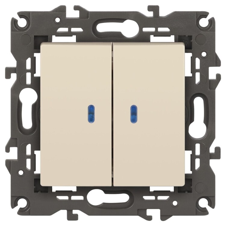 Выключатель 2-клавишный подсветка Эра Elegance слоновая кость 14-1105-02. Оснащён автоматическими клеммами для надёжной фиксации жил кабеля в механизме. Рамки приобретаются отдельно.