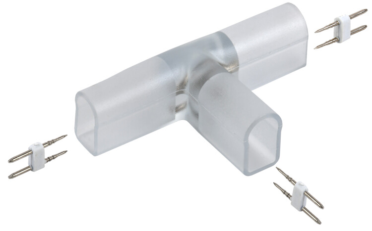Т-образные коннекторы предназначены для соединения трёх отрезков светодиодной ленты под прямым углом.