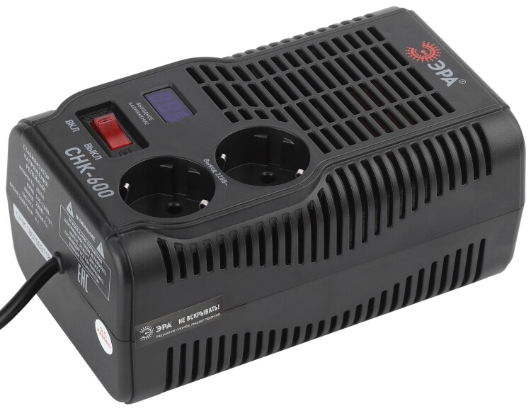 Стабилизатор напряжения компактный однофазный релейный цвет чёрный модели СНК-600. Номинальные характеристики (полная мощность / диапазон входного напряжения): 600ВА 160-260В . Предназначен для поддержания стабильного однофазного напряжения питания бытовых приборов при отклонениях значений сетевого напряжения. Выбирая стабилизатор, нужно знать, какое электрооборудование будет к нему подключено: один прибор, группу приборов (наиболее чувствительных к перепадам напряжения в сети) либо вся домашняя (офисная) техника. Затем необходимо рассчитать суммарную мощность защищаемых электропотребителей. Основное условие выбора мощности стабилизатора напряжения - суммарная мощность подключаемой к нему нагрузки не должна превышать полной мощности самого стабилизатора (в противном случае автоматика стабилизатора будет их просто отключать). Точные значения мощности можно узнать из паспортных данных Вашего конкретного потребителя. Стабилизатор подбирается с запасом в 25-30% к его полной мощности.
