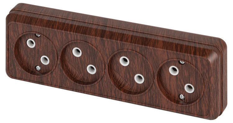 <p>Розетка четырехместная серии Intro Quadro открытой установки цвет венге 2-207-10. Номинальные характеристики 16А 250В.,корпус выполнен из платика (термопласт). Оснащёна винтовыми зажимами.</p>