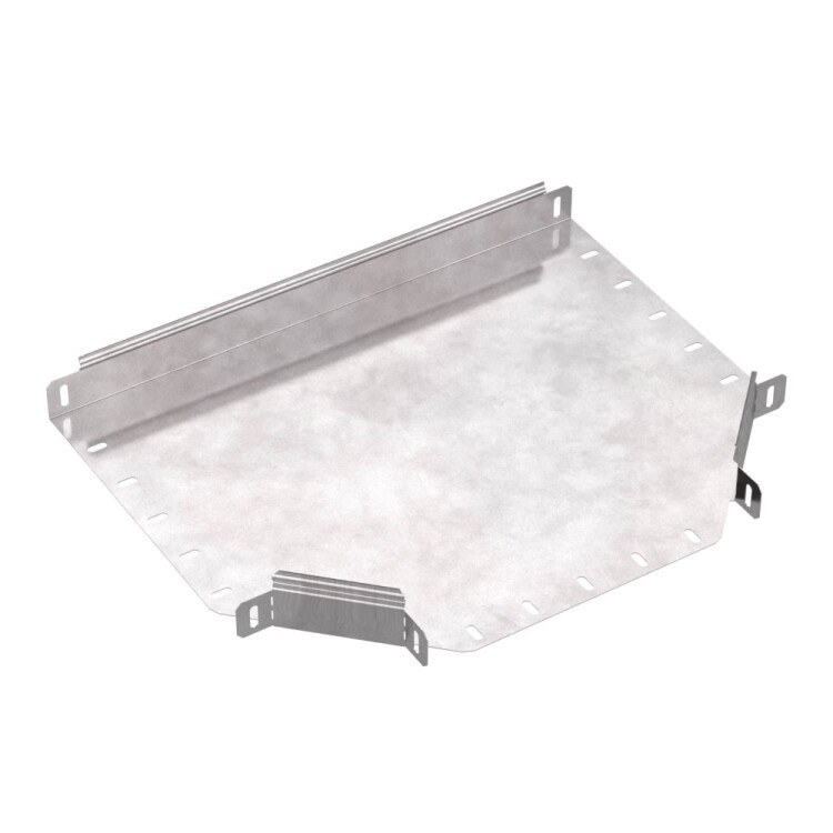 Аксессуары изготовленные из стали с защитным покрытием по методу Сендзимира – это изделия, на которых защитное цинковое покрытие было нанесено на листовую сталь перед изготовлением. Толщина защитного покрытия варьируется от 10 до 22мкм. Климатическое исполнение изделий УХЛ2, что предусматривают эксплуатацию в помещении и под навесом, при температуре эксплуатации от -80 до +150°С. Ответвитель Т-образный предназначен для разветвления кабельных трасс в горизонтальном направлении, для перфорированных и глухих лотков. В комплект не входит крышка.