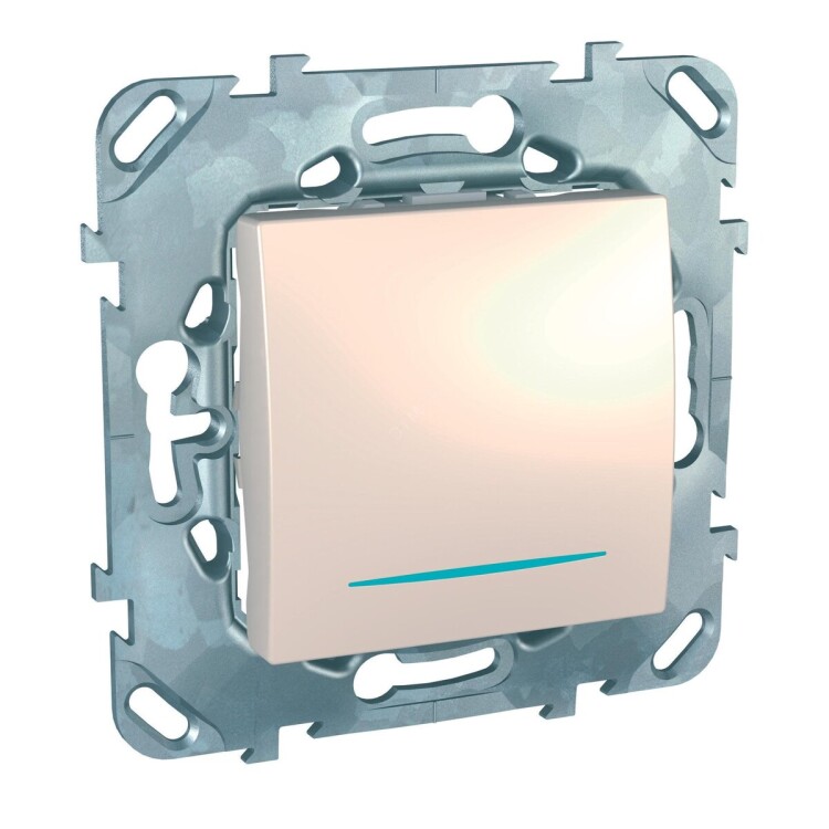 Выключатель одноклавишный кнопочный для скрытой установки с индикаторной лампой, 10А, IP20, бежевый