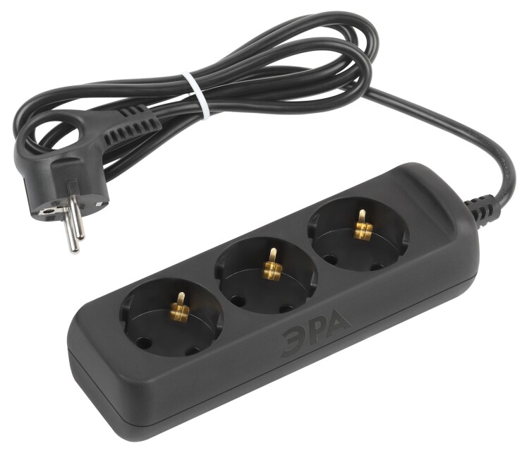 <p>Удлинитель электрический Эра UX-3e-1,5m-B с заземлением, черный, 3 розетки. Провод ПВС, 3x0,75мм2, 1,5 м. Рассчитан на максимальную мощность 10А/2200 Вт. Удлинитель Эра станет Вашим надежным помощником, если Ваши любимые электроприборы находятся далеко от розеток. Провод в удлинителях Эра сделан из 100% меди, что делает его абсолютно пожаробезопасным. Корпус выполнен из ударопрочного и негорючего пластика (полипропилен). Вилка обеспечена кольцом для удобного извлечения ее из розетки. Модель удлинителя на 10А позволяет подключить бытовые приборы общей нагрузкой до 2200 Вт. Дизайн удлинителя разработан в России командой Эра Style.</p>