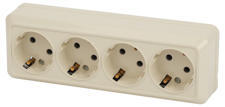 <p>Розетка четырехместная Intro серии Quadro 2-208-02 с заземлением 4х2P+E, открытой установки, цвет слоновая кость;номинальные характеристики: 16А-250В, IP20; выполнена из негорючего термопласта, оснащена винтовыми зажимами и клеммами.</p>