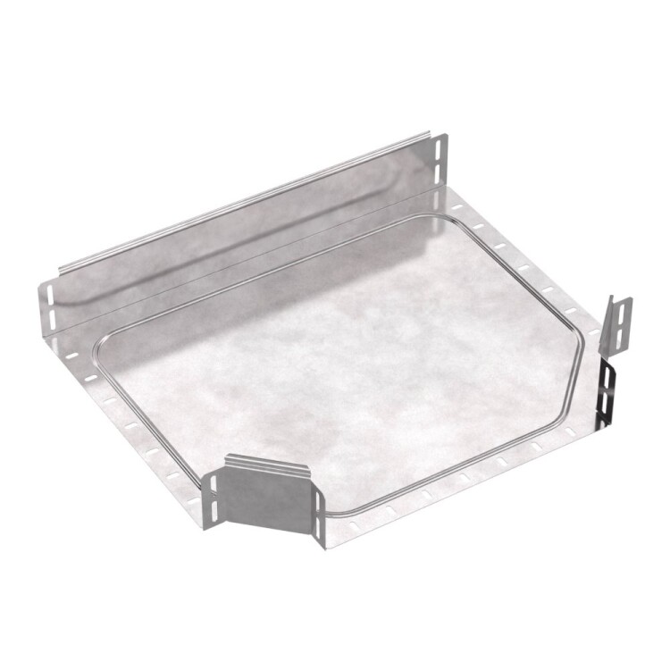 Аксессуары изготовленные из стали с защитным покрытием по методу Сендзимира – это изделия, на которых защитное цинковое покрытие было нанесено на листовую сталь перед изготовлением. Толщина защитного покрытия варьируется от 10 до 22мкм. Климатическое исполнение изделий УХЛ2, что предусматривают эксплуатацию в помещении и под навесом, при температуре эксплуатации от -80 до +150°С. Ответвитель Т-образный предназначен для разветвления кабельных трасс в горизонтальном направлении, для перфорированных и глухих лотков. В комплект не входит крышка.