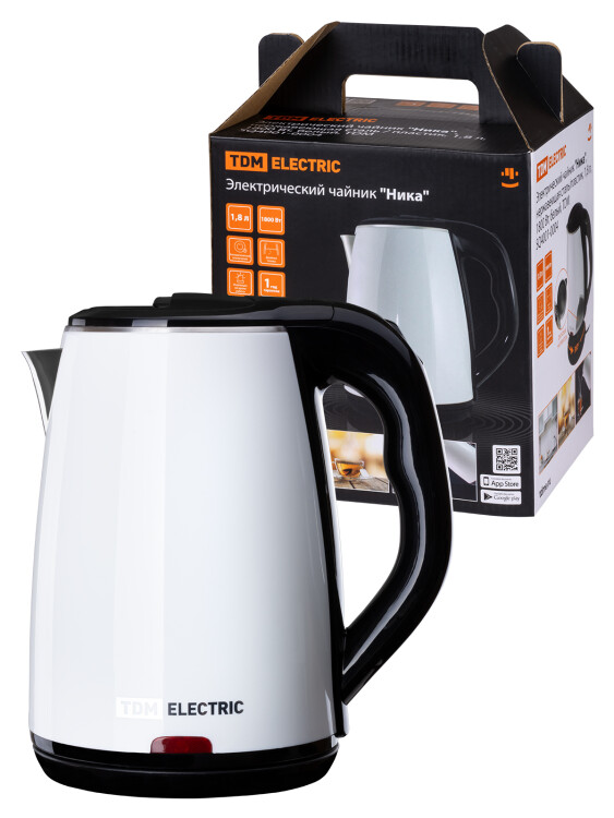 Электрический чайник "Ника", нержавеющая сталь / пластик, 1,8 л, 1800 Вт, белый, TDM