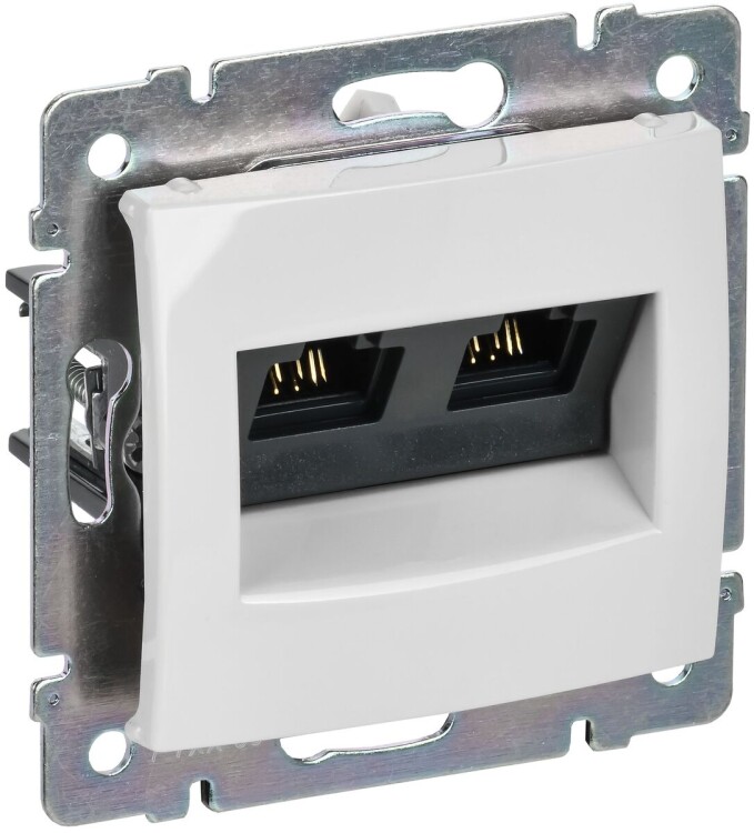 Розетка компьютерная (информационная) VALENA RJ45 UTP двойная скрытого монтажа. Предназначена для быстрого подключения персональных компьютеров к информационным сетям категории 6.