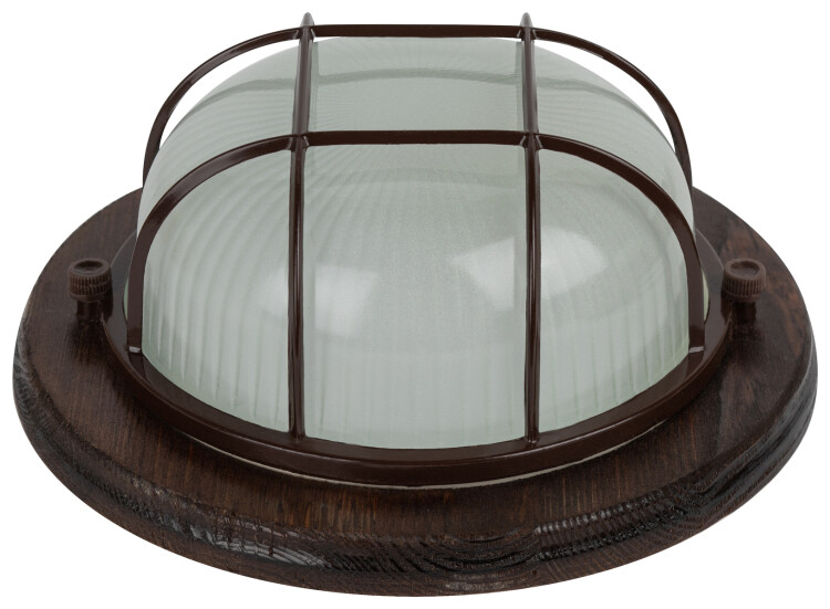 <p>Светильник серии "Кантри", в дизайне которой применено натуральное дерево. Некоторые модели дополнительно защищены деревянной решеткой. Диапазон рабочих температур: от +1°С до +130°С. Материал рассеивателя: селикатное стекло. Материал корпуса: сталь, дерево (орех). Источник света: лампа с цоколем Е27. Габариты: 220х220х92 мм. Степень защиты от окружающей среды: IP54. Данные светильник и предназначены для освещения административно-бытовых, производственных помещений и мест общественного пользования.</p>