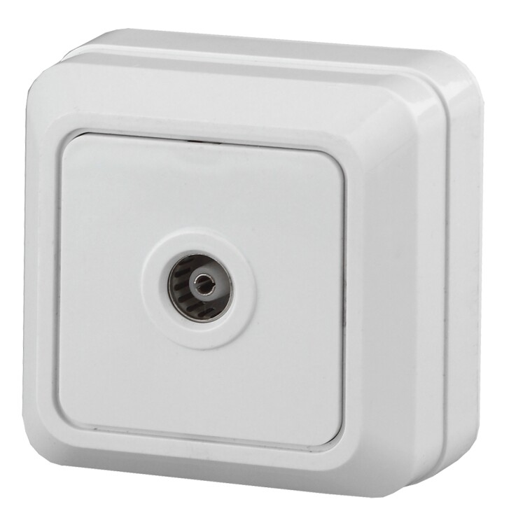 <p>Розетка TV одиночная Intro серии Quadro открытой установки цвет белый 2-301-01; номинальные характеристики: 16А 250В, IP20. Розетка выполнена из негорючего термопласта, стали и латуни, оснащена винтовыми зажимами.</p>