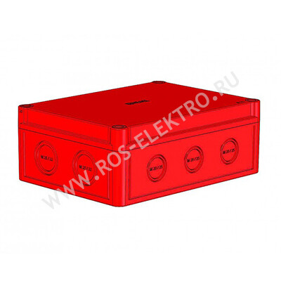 Материал коробки поликарбонат, красный цвет корпуса и крышки, низкая крышка, коробка с монтажной пластиной МП5802.