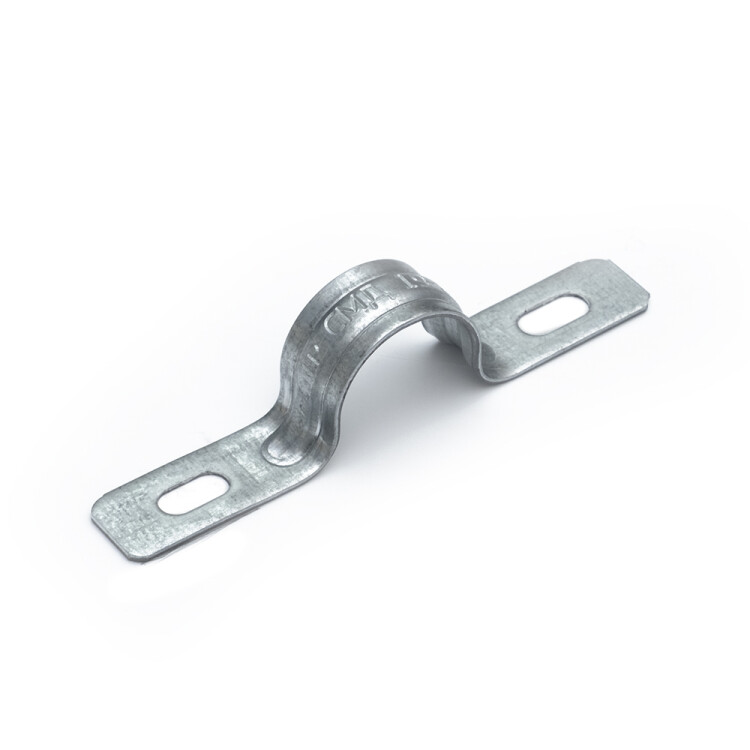 Скоба металлическая двухлапковая усиленная противопожарная (СМДУ), предназначена для крепления металлорукава, металлических и пластиковых труб к различным несущим поверхностям, а также для монтажа кабельной продукции. Изготавливается с овальным отверстиями 10х5мм (скобы диаметром от 6 до 40мм), и 10х6мм (скобы диаметром от 48-63мм), что обеспечивает возможность установки самореза с пресс-шайбой диаметром 4,2мм. Конструкция скоб соответствует ГОСТ 17678-80. Скобы металлические изготавливаются из оцинкованной стали (по ГОСТ 14918), толщиной от 0,9 до 1,9мм. Применяются в ОКЛ.