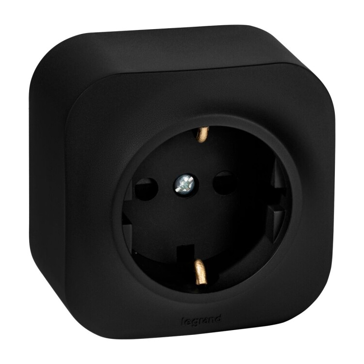 Розетка с заземлением и защитными шторками QUTEO для открытого монтажа. Применяется в зданиях, оборудованных для повышения безопасности проводкой с заземлением (с защитным проводником). Рекомендуются к применению в помещениях в которых могут быть дети. Шторки осуществляют защитную функцию путём ограничения доступа к токоведущим контактам. Доступ открывается только при подключении вилки.