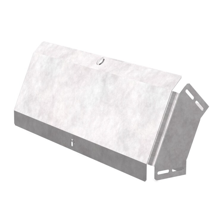 Аксессуары изготовленные из стали с защитным покрытием по методу Сендзимира – это изделия, на которых защитное цинковое покрытие было нанесено на листовую сталь перед изготовлением. Толщина защитного покрытия варьируется от 10 до 22мкм. Климатическое исполнение изделий УХЛ2, что предусматривают эксплуатацию в помещении и под навесом, при температуре эксплуатации от -80 до +150°С. Угол вертикальный внешний 45 градусов предназначен для спуска кабельных трасс на 45 градусов, для перфорированных и глухих лотков. В комплект входит крышка.