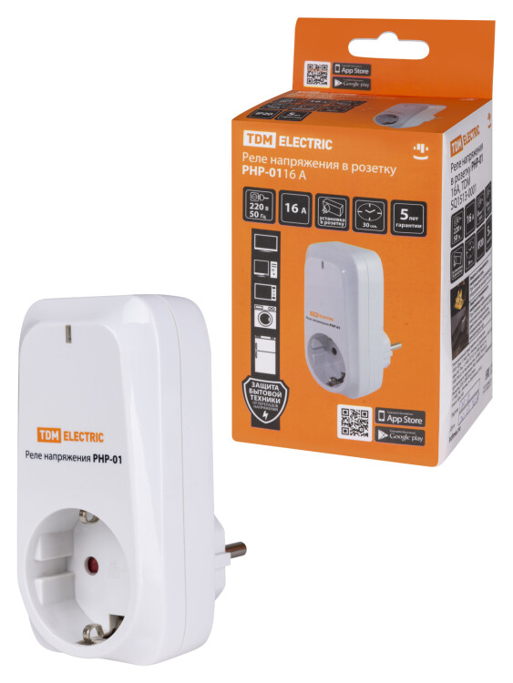 Реле напряжения в розетку РНР-01, 16А TDM