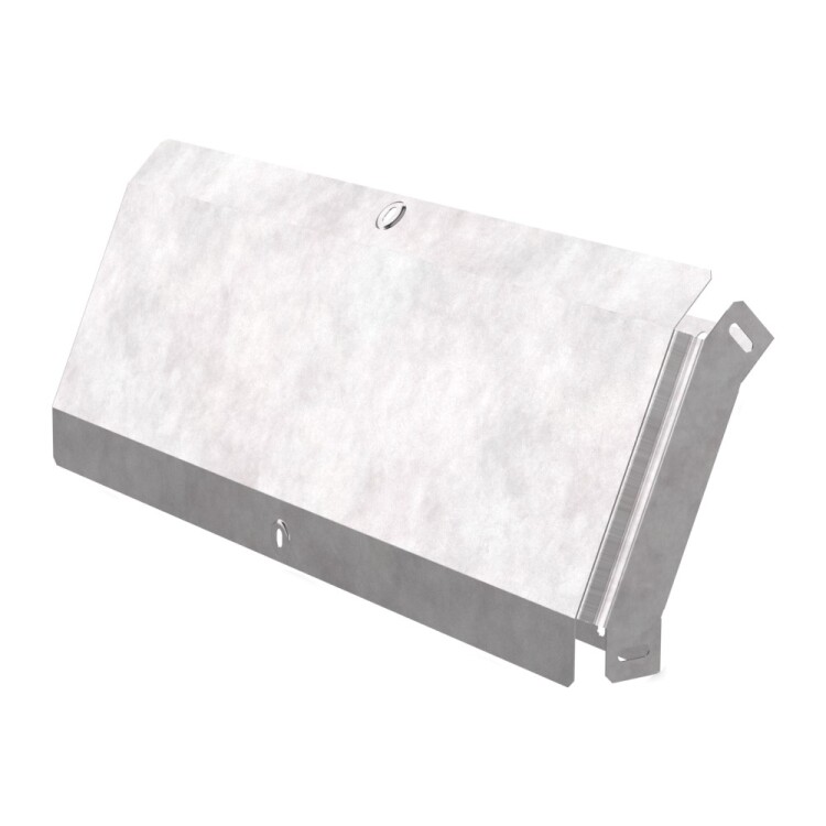 Аксессуары изготовленные из стали с защитным покрытием по методу Сендзимира – это изделия, на которых защитное цинковое покрытие было нанесено на листовую сталь перед изготовлением. Толщина защитного покрытия варьируется от 10 до 22мкм. Климатическое исполнение изделий УХЛ2, что предусматривают эксплуатацию в помещении и под навесом, при температуре эксплуатации от -80 до +150°С. Угол вертикальный внешний 45 градусов предназначен для спуска кабельных трасс на 45 градусов, для перфорированных и глухих лотков. В комплект входит крышка.