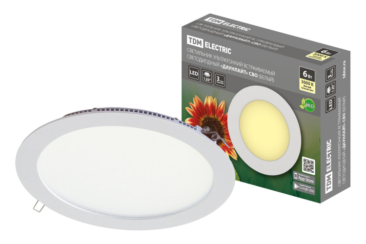 Светильник ультратонкий встраиваемый светодиодный "Даунлайт" СВО (белый) 6 Вт 3000К TDM