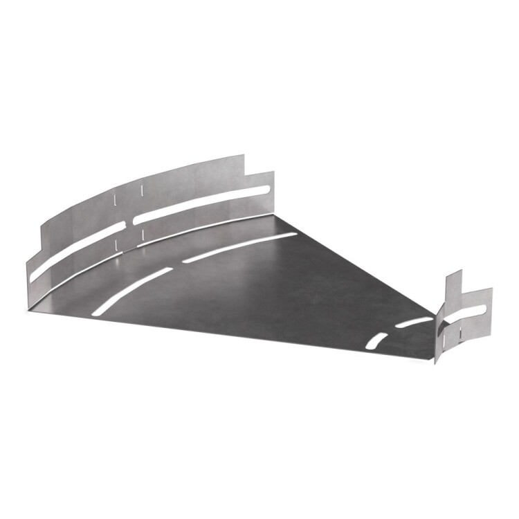 Аксессуары изготовленные из стали с защитным покрытием по методу Сендзимира – это изделия, на которых защитное цинковое покрытие было нанесено на листовую сталь перед изготовлением. Толщина защитного покрытия варьируется от 10 до 22мкм. Климатическое исполнение изделий УХЛ2, что предусматривают эксплуатацию в помещении и под навесом, при температуре эксплуатации от -80 до +150°С. Обеспечивает пла вный переход горизонтальной кабеленесущей линии между лотками металлическими в диапазоне от 0 до 45 градусов.