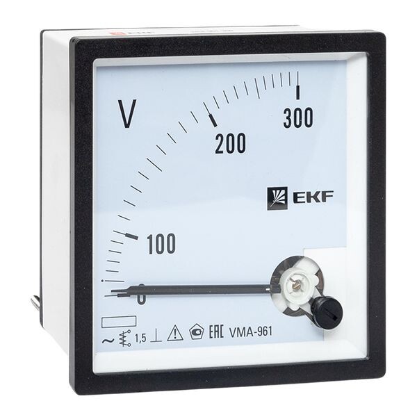 Аналоговые электроизмерительные вольтметры торговой марки EKF™ предназначены для измерения напряжения в электрических цепях переменного тока. Приборы применяются для работы в закрытых помещениях, в электрощитовом оборудовании, в электроустановках промышленных предприятий, жилых, общественных зданий и сооружений. Вольтметры устанавливаются на панель щита (квадратный и круглый вырезы). Разм еры лицевых панелей приборов: 72 х 72, 80 х 80 и 96 х 96. Вольтметры могут быть только прямого подключения, диапазон измерений зависит выбранной модификации вольтметра. Класс точности Аналоговых вольтметров составляет 1.5 для квадратного и 2.5 для круглого вырезов соответственно.