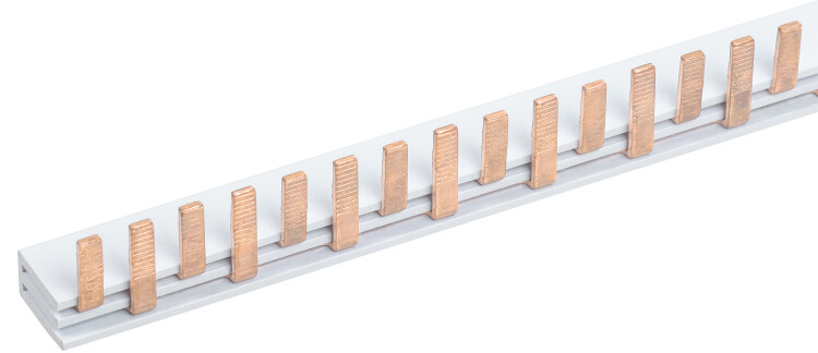 Обеспечивают удобное и быстрое соединение групп дифференциальных автоматических выключателей серии АВДТ32М со смещенным расположением вводных клемм. Шины, рассчитанные на номинальный ток 63 А, могут быть использованы с номинальным током 100 А, если вводной автомат подключать по центру.