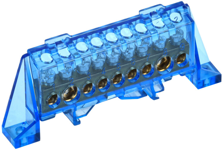 Контактная часть шин выполнена из латуни, прижимные винты из оцинкованной стали, изолятор из негорючего пластика.