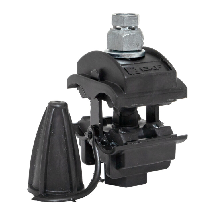 Контактные зубцы покрыты силиконовой смазкой и закрыты резиновым уплотнением. Болты стальные, горячей оцинковки. Испытано на напряжение 6 кВ в воде на глубине 1 м в течение минуты. Конструкция из стеклонаполненного погодо- и ультрафиолетостойкого полиамида. Отсутствие потенциала на болтах позволяет производить монтаж на линиях СИП находящихся под напряжением.