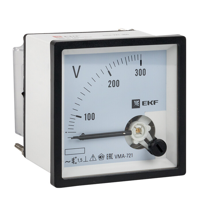 Аналоговые электроизмерительные вольтметры торговой марки EKF™ предназначены для измерения напряжения в электрических цепях переменного тока. Приборы применяются для работы в закрытых помещениях, в электрощитовом оборудовании, в электроустановках промышленных предприятий, жилых, общественных зданий и сооружений. Вольтметры устанавливаются на панель щита (квадратный и круглый вырезы). Разм еры лицевых панелей приборов: 72 х 72, 80 х 80 и 96 х 96. Вольтметры могут быть только прямого подключения, диапазон измерений зависит выбранной модификации вольтметра. Класс точности Аналоговых вольтметров составляет 1.5 для квадратного и 2.5 для круглого вырезов соответственно.