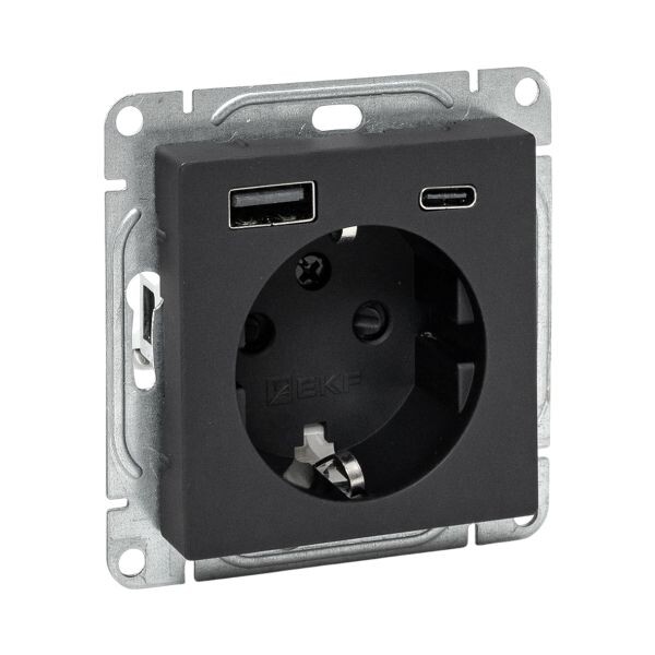 Силовая розетка с двумя USB-портами EKF коллекции «Эпика» с заземлением и защитными шторками - идеальное решение для стильного и безопасного подключения электроприборов.