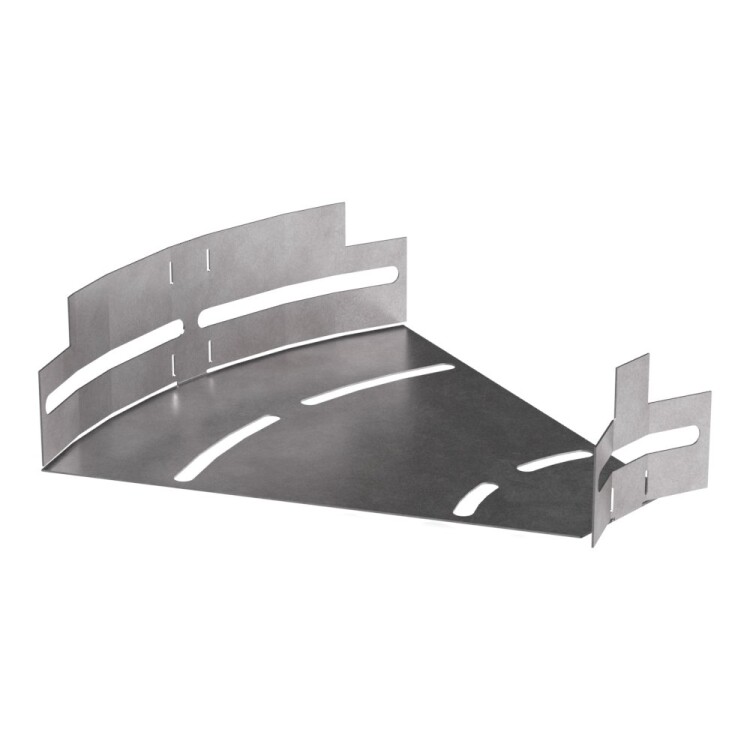 Аксессуары изготовленные из стали с защитным покрытием по методу Сендзимира – это изделия, на которых защитное цинковое покрытие было нанесено на листовую сталь перед изготовлением. Толщина защитного покрытия варьируется от 10 до 22мкм. Климатическое исполнение изделий УХЛ2, что предусматривают эксплуатацию в помещении и под навесом, при температуре эксплуатации от -80 до +150°С. Обеспечивает пла вный переход горизонтальной кабеленесущей линии между лотками металлическими в диапазоне от 0 до 45 градусов.