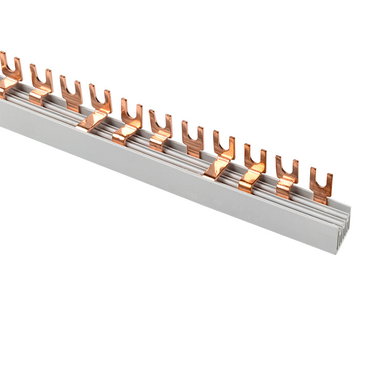 Шины соединительные представляют собой пластины, выполненные из меди (шины на 100 А – из луженой меди), закрепленные в корпусе из диэлектрического материала, не поддерживающего горение, и выпускаются стандартной длиной 1 метр. Шины соединительные делятся на два типа - FORK («вилка») и PIN («гребенка») на номинальные токи 63 и 100 А. Могут быть выполнены в одно- двух- трех- и четырехполюсном исполнений.