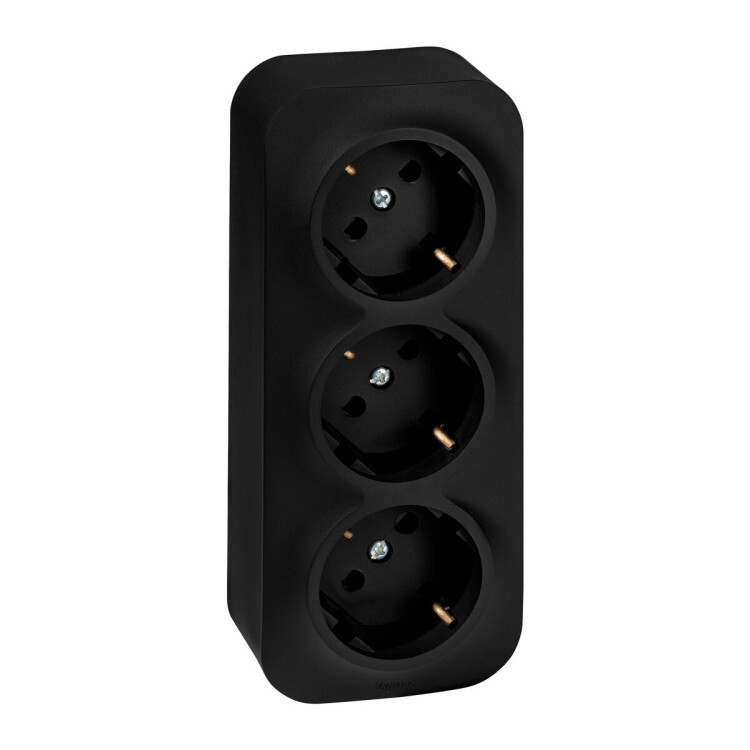 Тройная розетка с заземлением, со шторками QUTEO. Применяется в зданиях, оборудованных для повышения безопасности проводкой с заземлением (с защитным проводником). Рекомендуются к применению в помещениях в которых могут быть дети. Шторки осуществляют защитную функцию путём ограничения доступа к токоведущим контактам. Доступ открывается только при подключении вилки.