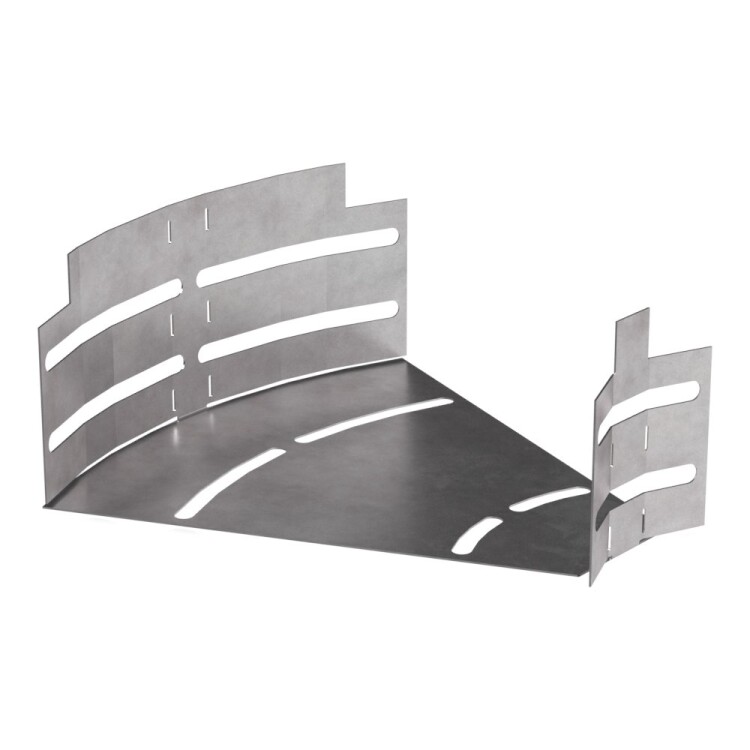 Аксессуары изготовленные из стали с защитным покрытием по методу Сендзимира – это изделия, на которых защитное цинковое покрытие было нанесено на листовую сталь перед изготовлением. Толщина защитного покрытия варьируется от 10 до 22мкм. Климатическое исполнение изделий УХЛ2, что предусматривают эксплуатацию в помещении и под навесом, при температуре эксплуатации от -80 до +150°С. Обеспечивает пла вный переход горизонтальной кабеленесущей линии между лотками металлическими в диапазоне от 0 до 45 градусов.