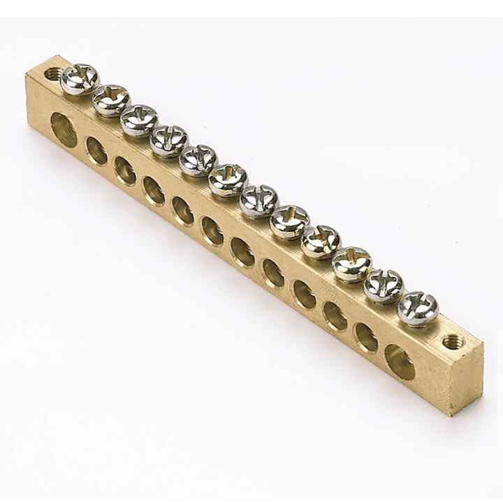 Шины предназначены для присоединения нулевых проводников (шина N) и заземления (шина PE). Шины выполнены из латуни и никелированной латуни. Нулевая шина устанавливается на изоляторе.