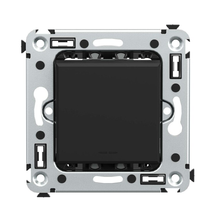 Переключатель одноклавишный в стену серии ""Avanti"". Предназначен для монтажа в подрозеточные коробки (код 59301). Используется для включения/выключения освещения из двух мест. Диаметр отверстий для ввода кабелей - 3 мм (по 2 отверстия на одну клемму), винтовые зажимы, шаблон для зачистки кабеля - 11 мм. Номинальный ток - 16 A. Номинальное напряжение - 230 В. Фиксация производится в подрозеточную коробку при по мощи саморезов. 2 модуля. Цвет – ""Черный матовый"".