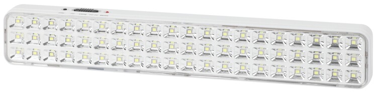 <p>Светильник аварийный светодиодный. Область применения: Предназначен для освещения путей эвакуации, коридоров, проходов, запасных дверей; как эвакуационные или указательные светильники (при наличии пиктограмм). Световой поток 360Лм Режим работы от сети 230В, от аккумулятора. Номинальное время автономной работы 3 часа; наличие кнопки "ТЕСТ" для проверки работы в аварийном режиме. Гарантия: 3 года. Диапазон рабочих температур:(+1+35). Класс энергоэффективности: A. Климатическое исполнение: УХЛ4. Наличие кнопки "ТЕСТ" для проверки работы в аварийном режиме. Цветовая температура: 6500K. Материал корпуса: пластик. Габариты: 340x55x30мм. Потребляемая мощность: 6Вт. Степень защиты от окружающей среды: IP20. Тип рассеивателя: прозрачный. Тип кривой: Д. </p>