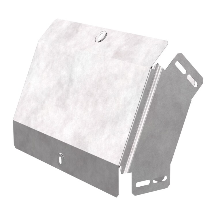 Аксессуары изготовленные из стали с защитным покрытием по методу Сендзимира – это изделия, на которых защитное цинковое покрытие было нанесено на листовую сталь перед изготовлением. Толщина защитного покрытия варьируется от 10 до 22мкм. Климатическое исполнение изделий УХЛ2, что предусматривают эксплуатацию в помещении и под навесом, при температуре эксплуатации от -80 до +150°С. Угол вертикальный внешний 45 градусов предназначен для спуска кабельных трасс на 45 градусов, для перфорированных и глухих лотков. В комплект входит крышка.
