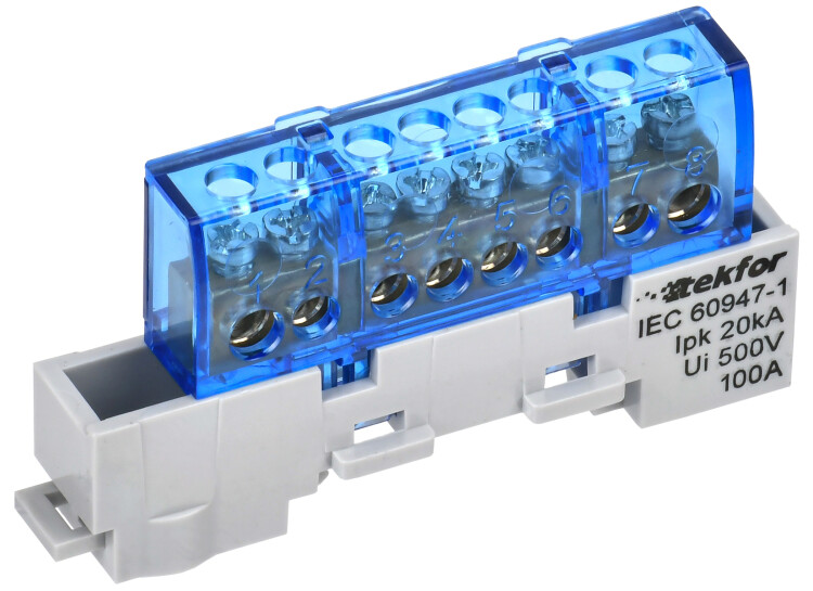 Контактная часть шин выполнена из латуни, прижимные винты из оцинкованной стали, изолятор из негорючего пластика.