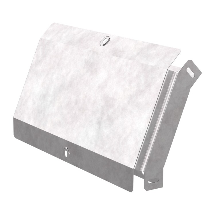 Аксессуары изготовленные из стали с защитным покрытием по методу Сендзимира – это изделия, на которых защитное цинковое покрытие было нанесено на листовую сталь перед изготовлением. Толщина защитного покрытия варьируется от 10 до 22мкм. Климатическое исполнение изделий УХЛ2, что предусматривают эксплуатацию в помещении и под навесом, при температуре эксплуатации от -80 до +150°С. Угол вертикальный внешний 45 градусов предназначен для спуска кабельных трасс на 45 градусов, для перфорированных и глухих лотков. В комплект входит крышка.