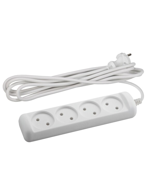 Удлинитель электрический ЭРА UX-4-5m без заземления 4 розетки 5м ШВВП 2x0,75мм2 6А белый