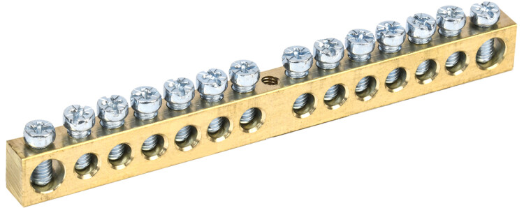 Применяются в щитовом оборудовании для подсоединения нулевых рабочих (N) и нулевых защитных проводов (PE). Крепление шины предусмотрено по центру (типы 8/1; 14/1) и по краям (типы 8/2; 14/2) через изолятор нулевой шины на 35-мм монтажную DIN-рейку и через угловые изоляторы нулевой шины, а также непосредственно на панель. При подключении к шинам медных многожильных проводов рекомендуется оконцевание их накончниками. Выполнены из латуни.