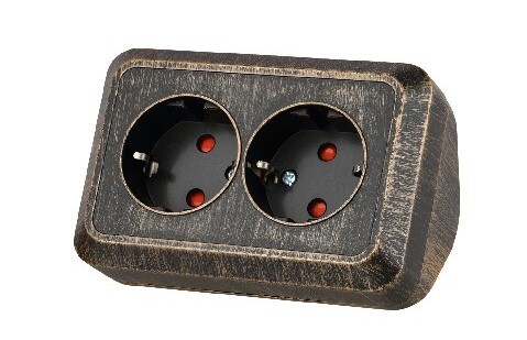 Розетка угловая двойная 2П+3 открытой установки с з/ш IP20 250В 16А бронза "Ладога" TDM