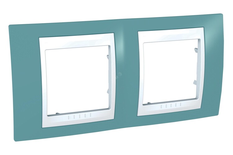 Рамка горизонтальная на 2 места, хамелеон синий/белый