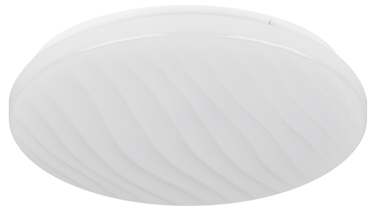 Рельефный дизайн рассеивателя, напоминающий морские волны, идеально сочетается с круглым плоским корпусом. За счет этого электросветильник освежит интерьер гостиной, спальни или прихожей.<br />
