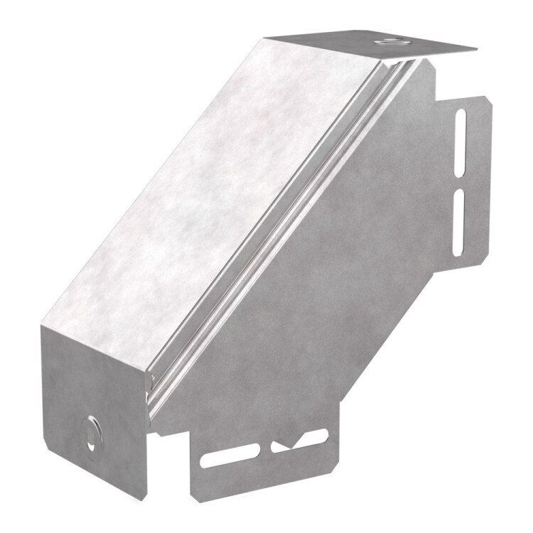 Аксессуары изготовленные из стали с защитным покрытием по методу Сендзимира – это изделия, на которых защитное цинковое покрытие было нанесено на листовую сталь перед изготовлением. Толщина защитного покрытия варьируется от 10 до 22мкм. Климатическое исполнение изделий УХЛ2, что предусматривают эксплуатацию в помещении и под навесом, при температуре эксплуатации от -80 до +150°С. Угол вертикальны й внешний 90 градусов предназначен для спуска кабельных трасс на 90 градусов, для перфорированных и глухих лотков. В комплект входит крышка.