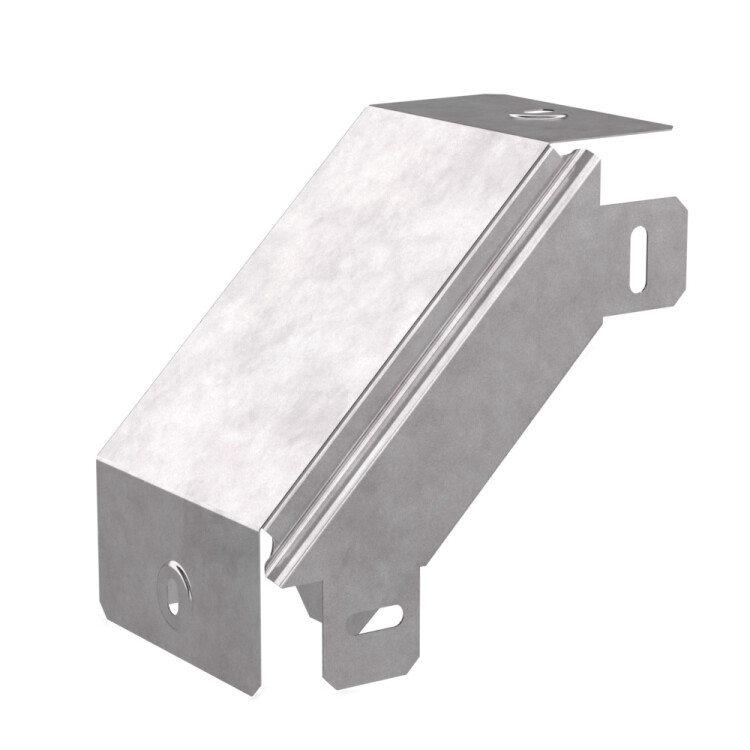 Аксессуары изготовленные из стали с защитным покрытием по методу Сендзимира – это изделия, на которых защитное цинковое покрытие было нанесено на листовую сталь перед изготовлением. Толщина защитного покрытия варьируется от 10 до 22мкм. Климатическое исполнение изделий УХЛ2, что предусматривают эксплуатацию в помещении и под навесом, при температуре эксплуатации от -80 до +150°С. Угол вертикальный внешний 90 градусов предназначен для спуска кабельных трасс на 90 градусов, для перфорированных и глухих лотков. В комплект входит крышка.