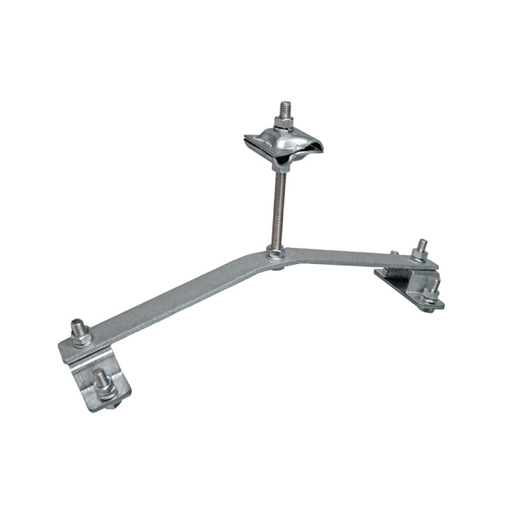 Арт. 70845. Держатель проводника круглого 8-10 мм для конька опорный, оцинк. Держатель применяется для крепления прутка на коньке профильной, фальцевой, скатной кровли. Держатель закрепляется на кровле при помощи двух скоб для конька и кровельных саморезов. Для крепления прутка применяется держатель с резьбой М8, аналогичный Арт. 91071.