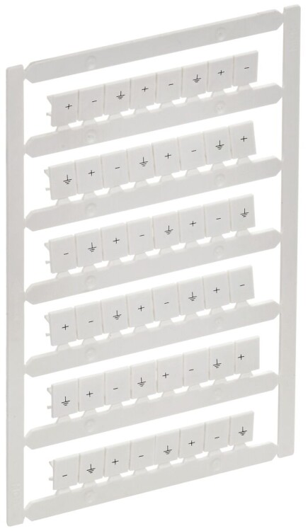 Маркеры ARMAFIX используются для маркировки рядов клеммных колодок ARMAFIX в системах распределения. Устанавливаются в соответствующие пазы клеммы. Выполнены в виде пластин. Каждая площадка может отсоединяться друг от друга. Совместимы с клеммами ARMAFIX CP 1,5мм2. На маркерах нанесены обозначения "+, - знак заземления". Печать выполнена способом, который обеспечивает долговечную и нестираемую маркировку. Изготавливаются из поликарбоната. В карте 48 маркеров.