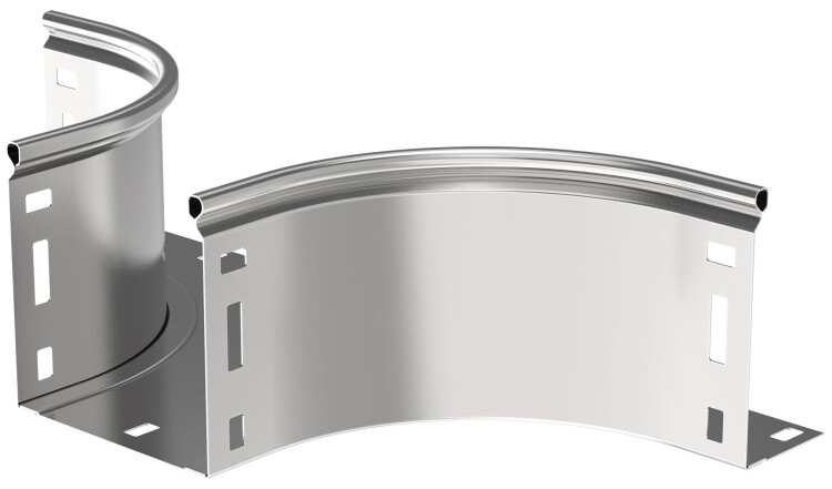 Отвод Т-образный плавный предназначен для организации Т- или Х-образного горизонтального отвода кабельной трассы. Также аксессуар применяется для Т-ответвления вниз в вертикальной плоскости без применения крышки. Крышка аксессуара в комплект не входит.