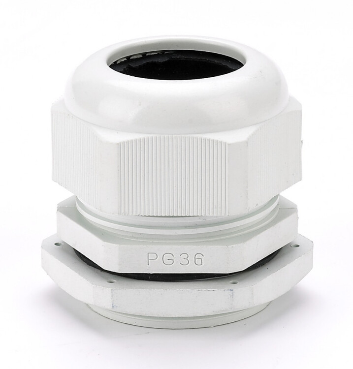 Кабельный ввод серии КВ-101 DEKraft, типа PG 36 диаметр кабеля - от 23 до 32 мм, цвет - белый, материал - пластик, степень защиты - IP54, количество в упаковке - 20 шт. Кабельный ввод состоит из фиксирующей гайки, корпуса, уплотнения из нейлона, а также из уплотнителя и прокладки из неопрена. Кабельные вводы имеют химическую стойкость к соленой воде, слабым кислотам, маслам, нефтепродуктам и основным растворителям. Конструкция кабельных вводов позволяет пропускать кабель без его демонтажа.