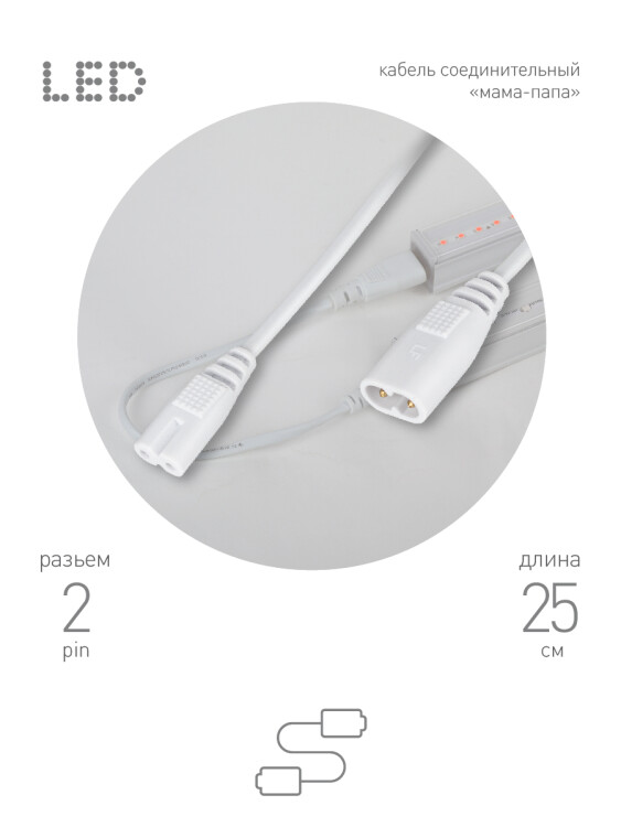 <p>Ассортимент аксессуаров ЭРА для подключения фитосветильников представлен: ЭРА FITO-2-pin (Б0051729) - кабель питания линейного фитосветильника, ЭРА FITO-3-pin (Б0051728) - кабель питания с кнопочным выключателем для линейных фитосветильников, ЭРА FITO - T5 (2-pin) (Б0057742) - соединительный кабель для фитосветильников 2-pin, 0,25 м (С7-С8), ЭРА FITO - C5 (3-pin) (Б0053063) - соединительный кабель для фитосветильников 3-pin, 0,25 м (С7-С8), ЭРА FITO-wire v.1 (Б0061035) -соединительный кабель для фитосветильников 2-pin, 0,25 м (С7-С7), ЭРА FITO-wire v.2 (Б0061567)-соединительный кабель для фитосветильников 2-pin, 0,5 м (С7-С8), ЭРА FITO-C7 (2 pin) (Б0060526) -соединительный кабель для фитосветильников 2-pin, 1 м (С7-С8), ЭРА FITO-Разветвитель 5х IEC C5 (3 pin) 2 м (Б0059055) - сетевой разветвитель для 5 фитосветильников, 3-pin, 2 м.</p>