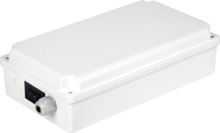 Блок расположен в выносном влагозащищенном боксе со степенью защиты IP65. Максимальная мощность подключаемой нагрузки - 200Вт. К одному БАП может быть подключено несколько светильников.